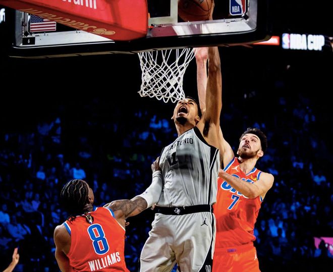 马刺这完全就是田忌赛马,让联盟第一的雷霆也是栽了跟头,不过马刺整体表现也是很出色的,全队4人得分上20+,成功顶住了雷霆的反扑。瓦塞尔拿到全队最高的23分,三分9中4,还有5篮板4助攻;卡斯尔、福克斯和文班亚马都是22分,得分还是非常平均的,让雷霆也是有些无奈。
