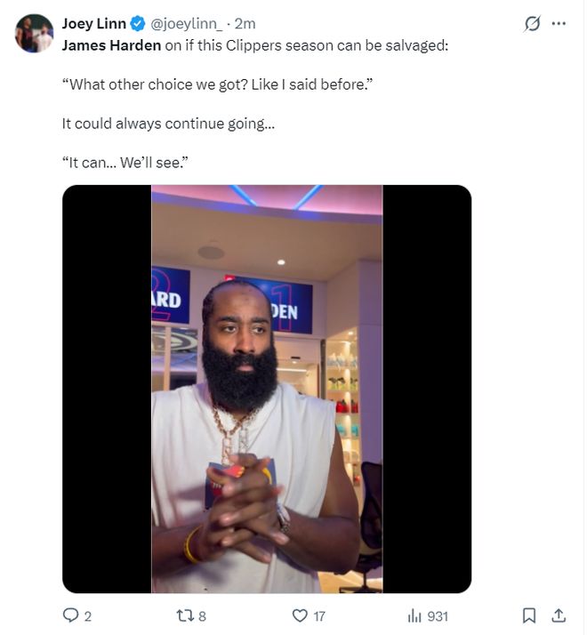 赛后哈登的采访疑似对快船已经失望了,快船记者在更衣室询问哈登:你觉得本赛季LAC还有回转的余地吗?