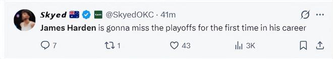 美媒写道:詹姆斯-哈登将生涯首次无缘季后赛。