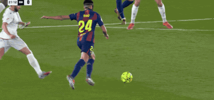 第14分钟,亚马尔原地摆脱送出妙传,费兰·托雷斯拍马赶到,第一时间射门,皮球稍稍高出。